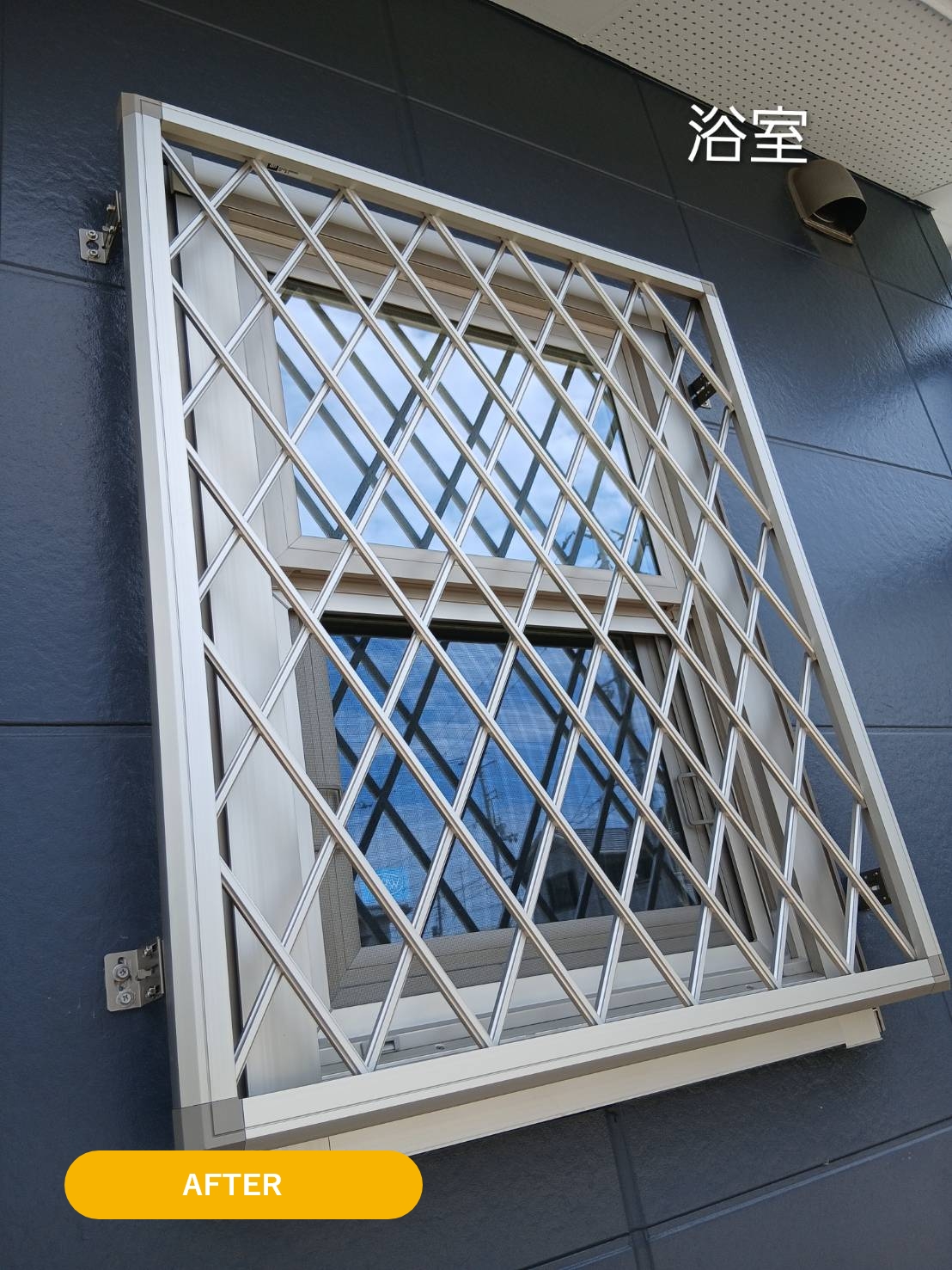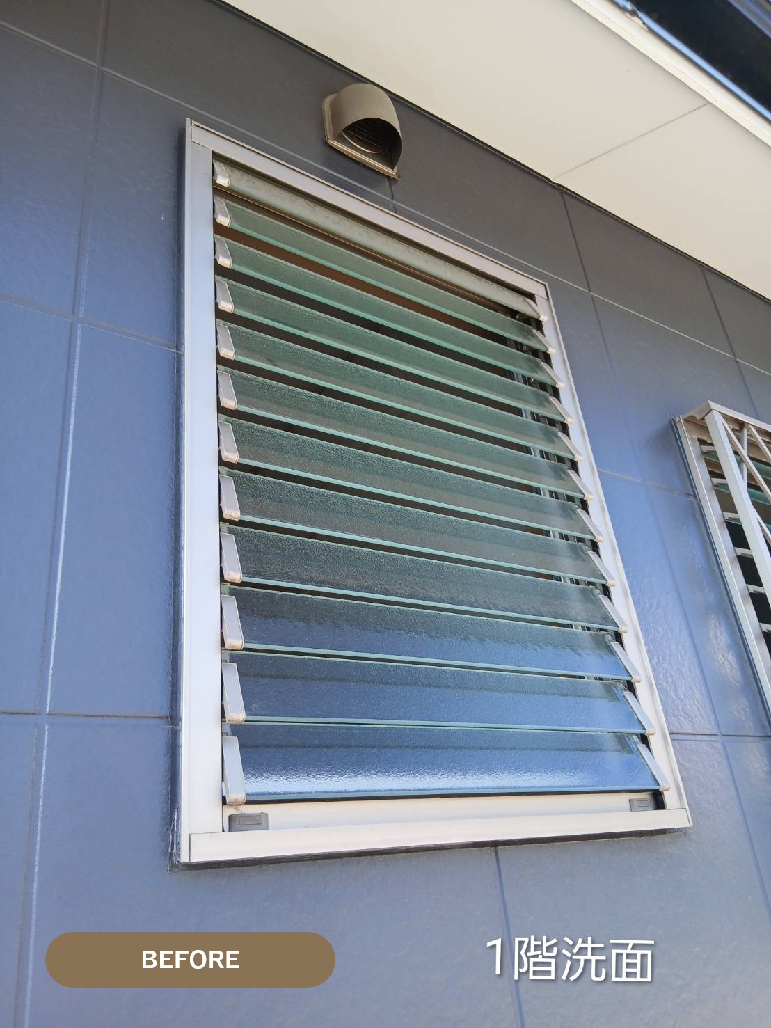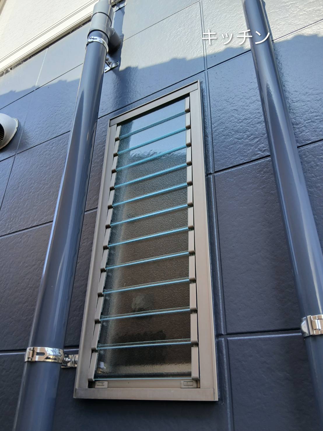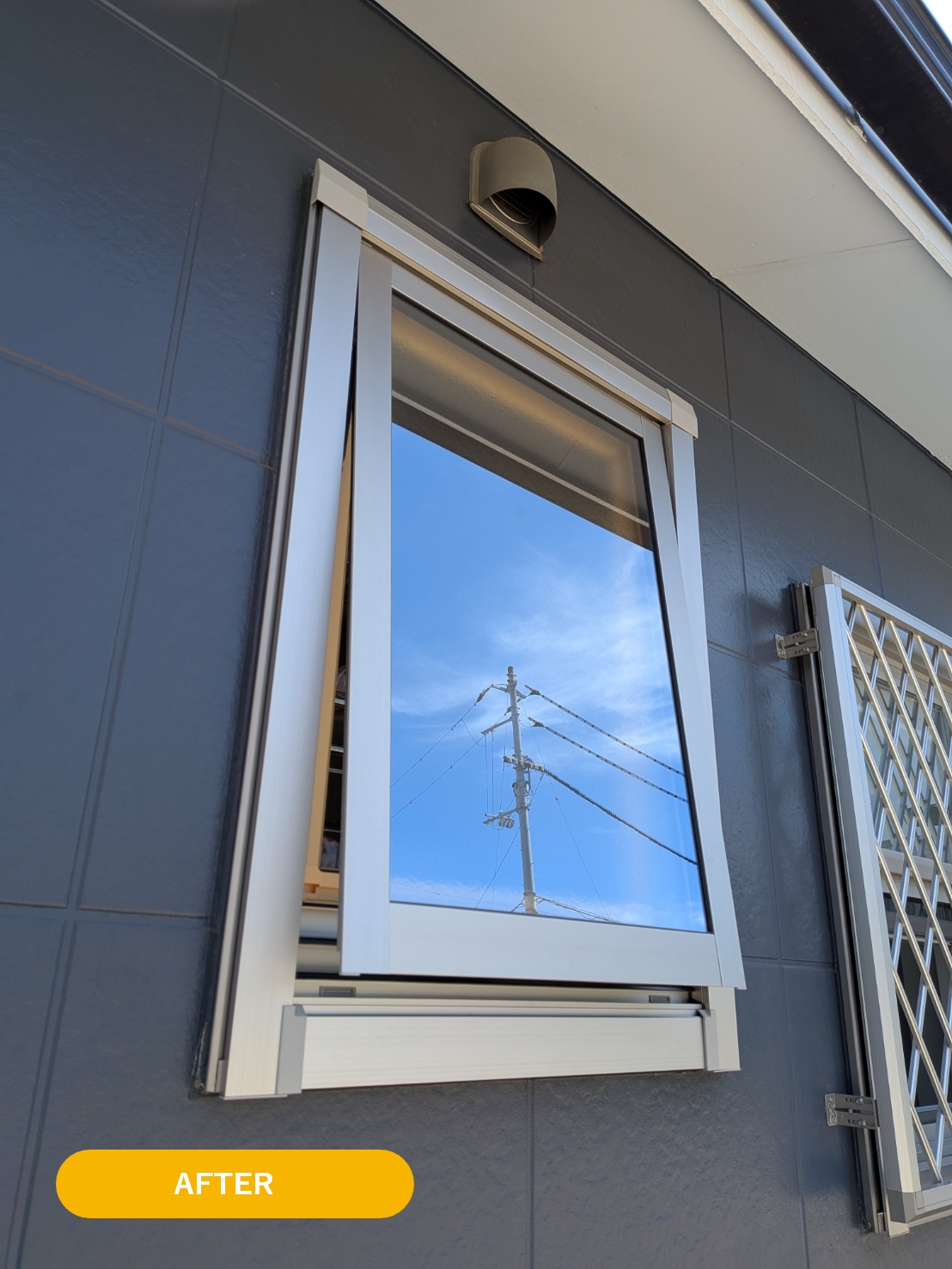 以前に内窓を設置したお客様で、前回内窓の取付けができなかった窓を断熱したいという依頼をお受けしました。何故内窓を取付けできなかったか。ルーバー窓が付いている為、窓を開閉するハンドルが内窓と干渉してしまうからです。内窓設置を希望されるお客様のお家に伺うと、今回のようなケースによく行き当たります。このようなケースでは、カバー工法による外窓交換をお勧めしています。この工法は、外壁や内壁を壊す事なく窓を交換でき、しかも窓の種類も変更できます。今回のケースではルーバー窓を、たてすべり出し窓、すべりだし窓、片上げ下げ窓に変更しました。ルーバー窓から変更する事により、断熱性がアップし、しかも部屋の用途によって窓の種類を変更し使い勝手よく使用できます。玄関ドアも補助金対象商品を選択されたので、玄関ドアと窓も含めて補助金の対象となっています。